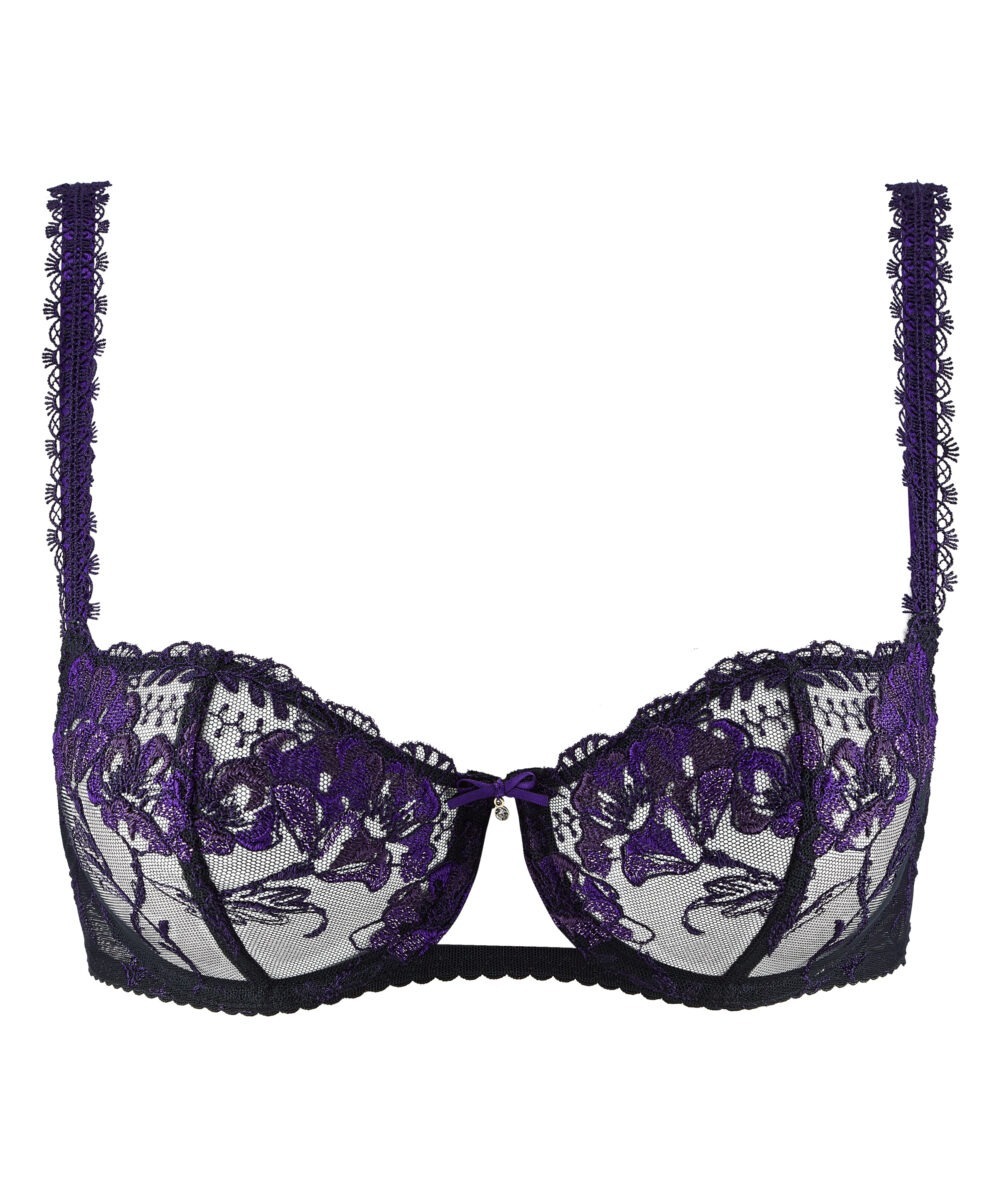 Galbant et rehaussant les seins pour une poitrine joliment projetée jusqu’au bonnet G, le soutien-gorge corbeille armatures À Fleur de Toi souligne le décolleté de sa broderie sexy avec fil lurex violet brillant.