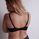 Confortable, le soutien-gorge plunge coque Amour Précieux se pare d’une broderie élégante, rehaussée par les coques noires dans un jeu entre transparence et opacité.