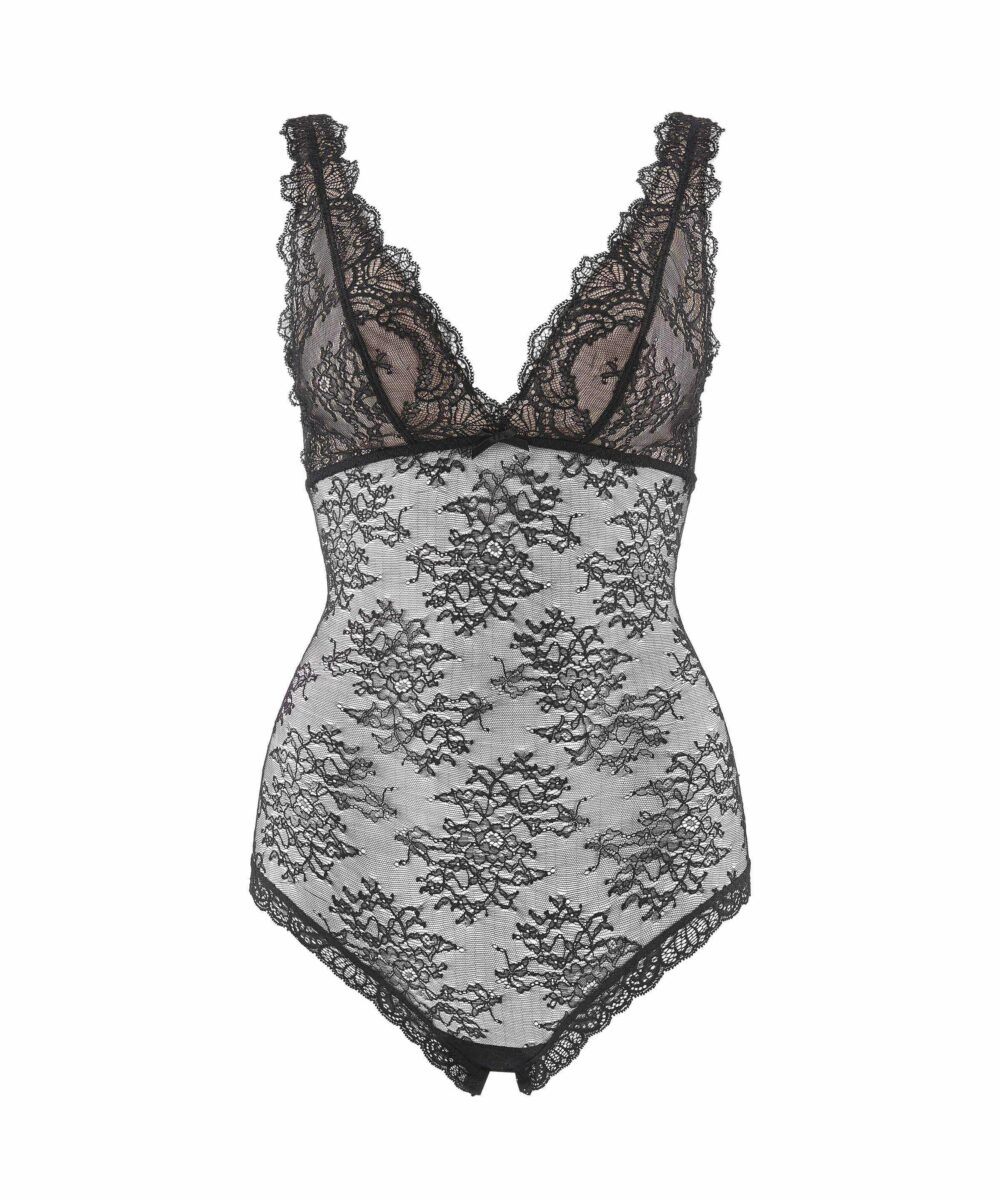 Ce body tout en dentelle est le chef d’œuvre de la ligne Danse des Sens. Il dessine la féminité dans un somptueux mélange de galons de dentelles et d’écailles aux volutes fleuries. Discret sous les vêtements, il se porte au quotidien comme dans les moments d’intimité. • Body sans armatures tout en dentelle •Attaches à l’entre-jambes • Laize et galon en dentelle lycra • Nœud satin