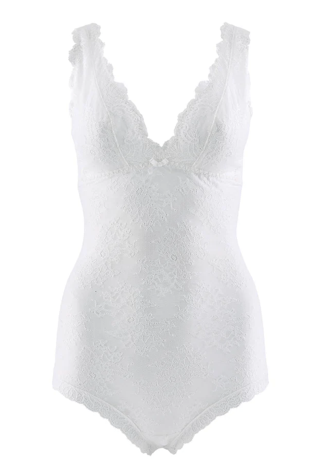 Ce body tout en dentelle est le chef d’œuvre de la ligne Danse des Sens. Il dessine la féminité dans un somptueux mélange de galons de dentelles et d’écailles aux volutes fleuries. Discret sous les vêtements, il se porte au quotidien comme dans les moments d’intimité. • Body sans armatures tout en dentelle •Attaches à l’entre-jambes • Laize et galon en dentelle lycra • Nœud satin