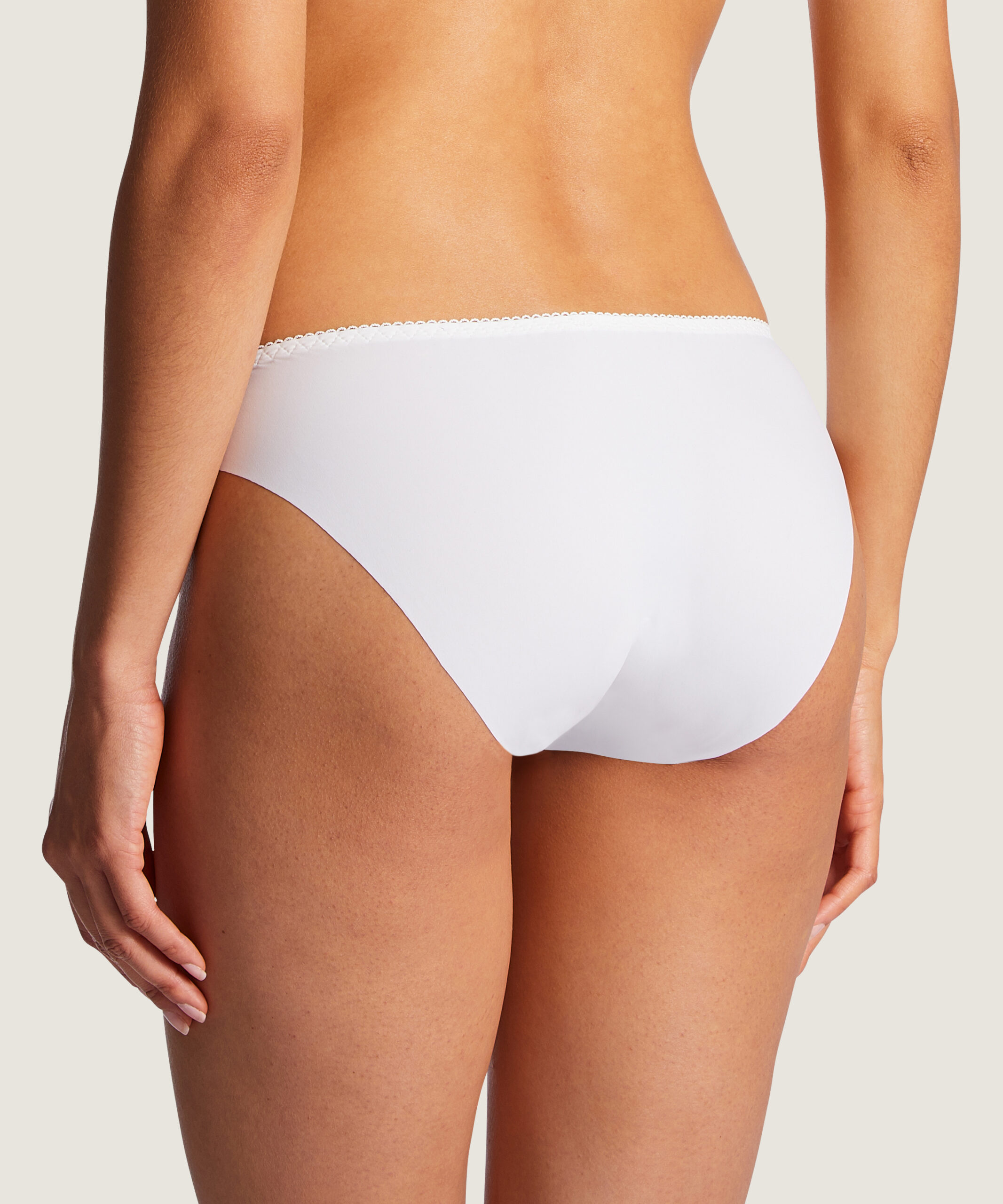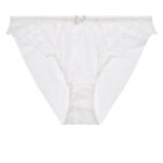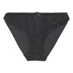 Confortable et sexy, la culotte brésilienne marie le raffinement des dentelles et l’aisance de la maille clean cut. À l’avant, les hanches se parent d’écailles fleuries qui laissent deviner la peau, tandis qu’un joli nœud de satin sublime le modèle de sa délicatesse. • Forme de culotte couvrante sur les fesses, taille au niveau des hanches • Dos en maille clean cut pour un effet invisible • Galon dentelle lycra • Laize dentelle lycra • Noeud satin