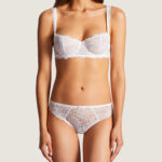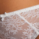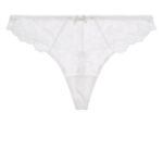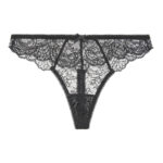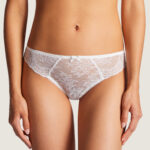 La ligne Danse des Sens ne peut se passer de l’incontournable Tanga qui charme les courbes tout en les dénudant. Une dentelle délicate dessine la ligne des hanches dans un style très raffiné, tandis que l’arrière dévoile les fesses et orne la chute de reins d’un somptueux travail d’écailles précieuses. • Forme tanga, taille au niveau des hanches, plus large sur les côtés qu’un string • Laize et galon en dentelle lycra • Nœud satin