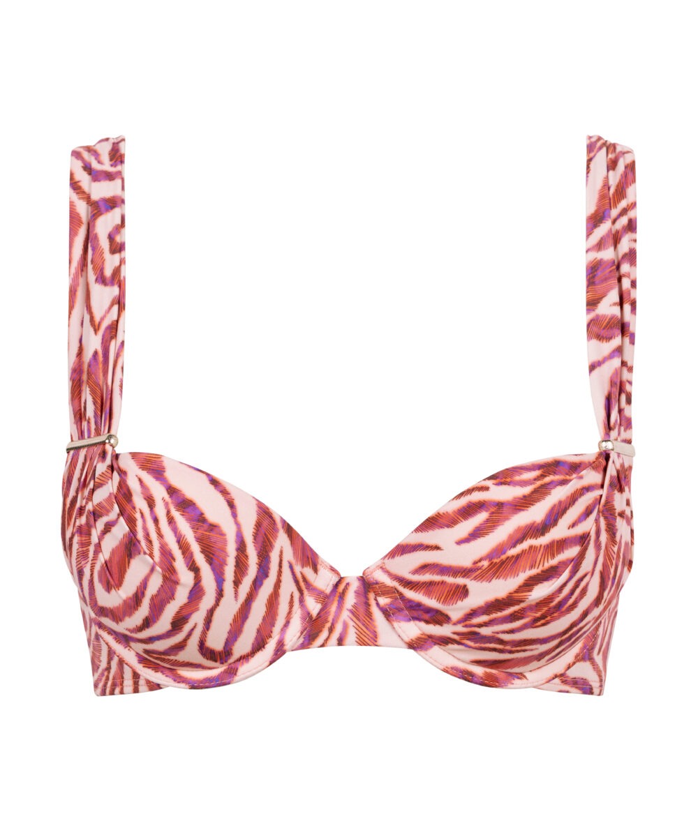 Avec son effet push-up confortable, le haut de maillot de bain plunge coque Feline Energy offre un décolleté sexy dont la profondeur est illuminée par d’élégantes barrettes dorée