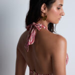 Derrière, l’iconique attache en tour du cou permet un dos ouvert résolument élégant et sexy.