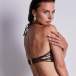 Offrant un décolleté sexy, souligné par un anneau doré, il se pare de liens entrecroisés façon macramé dans le dos pour une allure sophistiquée.