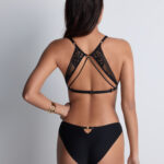 Forme moderne et confortable, sans armatures, le soutien-gorge triangle bralette Love Soul pare le décolleté d’un jeu de liens fins, rehaussé d’une touche dorée sexy à l’entregorge pour mieux en accentuer la profondeur. Dans le dos, la dentelle se fait graphique et dévoile sensuellement la peau dans un effet hypnotique.