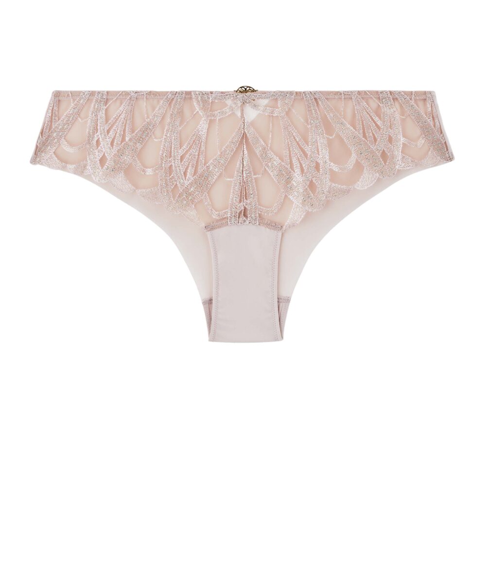 Offrant une forme shorty clean-cut confortable et invisible sous les vêtements, la culotte hipster Elie Saab x Aubade pare les hanches de sa broderie graphique transparente.