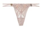 Alliant une broderie française graphique tout en transparence et un jeu de liens subtilement érotiques, il se pare de détails dorés qui apportent une touche d’impertinence à cette pièce résolument audacieuse.