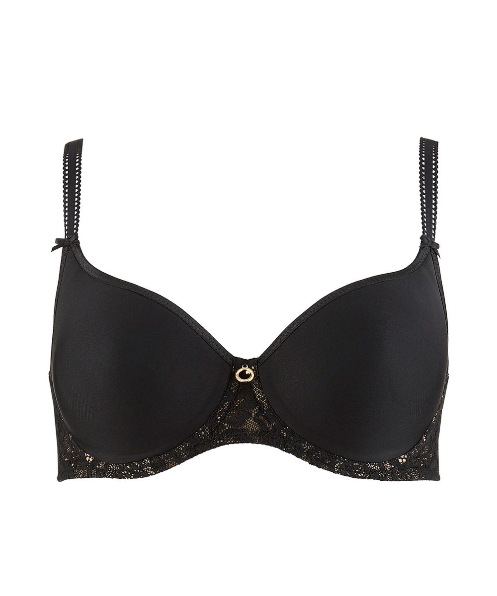 Idéal au quotidien, le soutien-gorge spacer T-shirt Bra Aubade se fait invisible sous les vêtements grâce à ses bonnets lisses. Sa forme souple et enveloppante, sublimée de bretelles en dentelle au dos assure un bon maintien. • T-Shirt bra, une forme enveloppante et confortable pour un porté invisible sous les vêtements •Galon de dentelle, high stretch •Bande dentelle extensible •Bretelles picot fantaisie extensibles •Tulle extensible multibrins •Bijou griffé Aubade avec strass Swarovski • Dos renforcé à partir du bonnet E