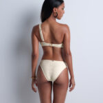 Élégante, elle se pare de touches dorées sur les hanches, en écho au fil lurex qui magnifie la matière, pour une silhouette tout en sensualité.