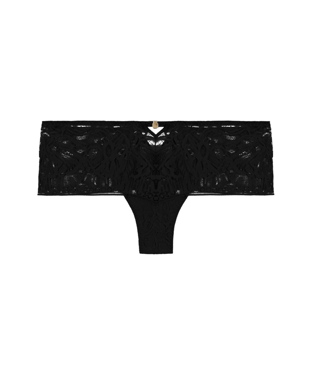Offrant beaucoup de transparence, le shorty Love Soul joue la carte du confort et de la séduction. Devant, un petit bijou doré très original souligne la taille. Dans le dos, de fins liens esprit bondage surmontent sa forme sexy, légèrement dégagée sur les fesses, pour une silhouette tout en sensualité