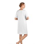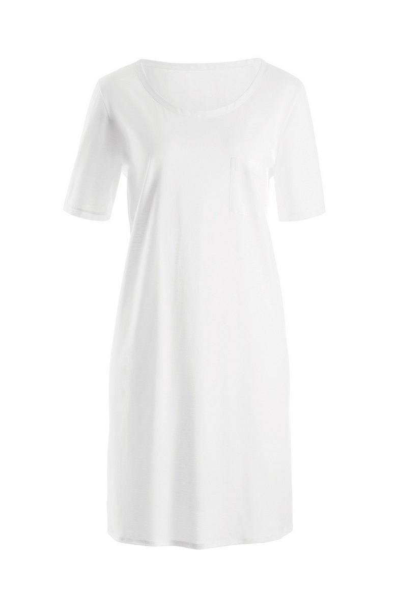 Chemise de nuit classique à manches courtes Fait de 100% coton mercerisé Empiècement en voile délicat sur l’encolure ronde Poche poitrine plaquée 90 centimètres de long