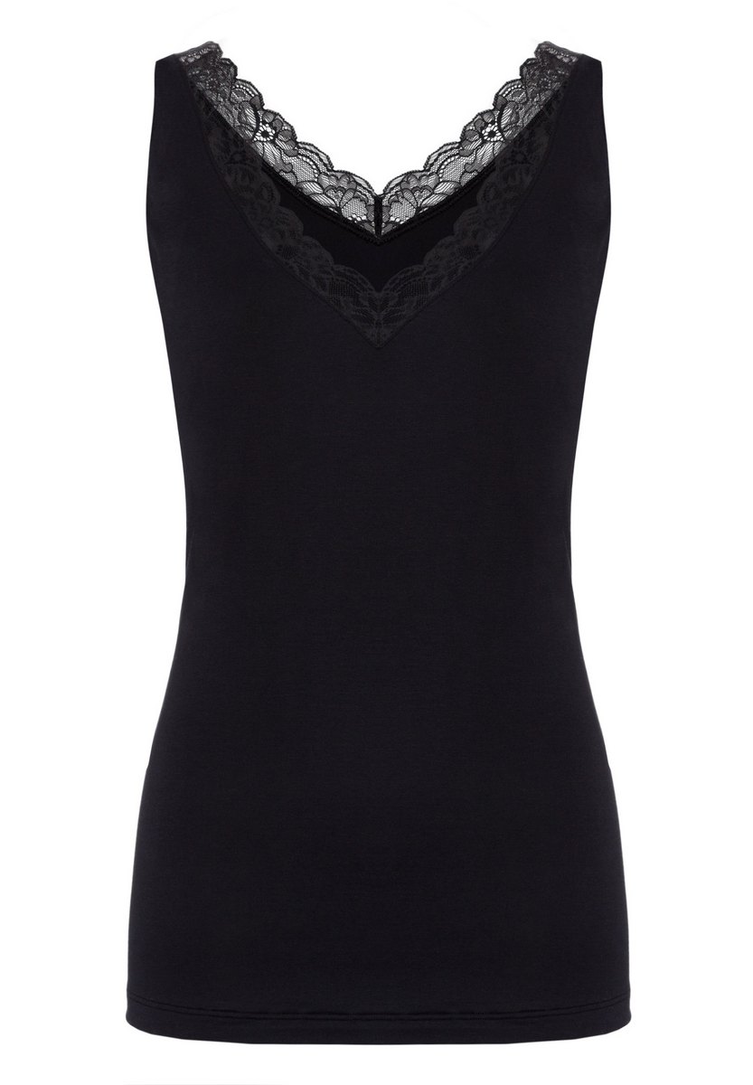 Débardeur élégant en coton supima doux Une proportion d’élasthanne assure une qualité souple et le meilleur ajustement Dentelle délicate sur le col en V classique