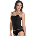 Top spaghetti en 100% coton avec une bordure en satin sur le décolleté – La mercerisation douce et le design sans couture typique de HANRO offrent un grand confort pour tous les jours – Coupe parfaite grâce aux bretelles spaghetti réglables en satin