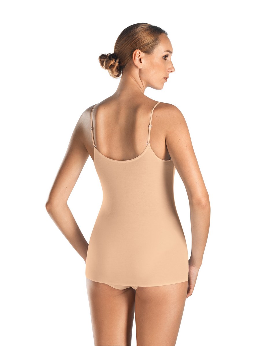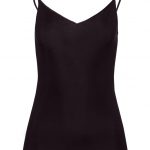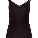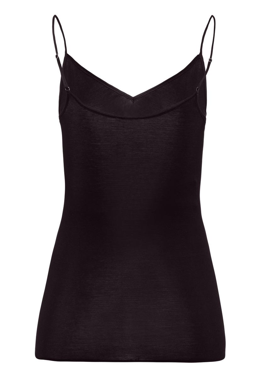 Top spaghetti sans coutures latérales et avec un col en V – Confort de port optimal grâce au coton mercerisé et aux mailles particulièrement fines – Le haut avec liseré en satin ressemble à une seconde peau – Coupe parfaite grâce aux bretelles en satin réglables
