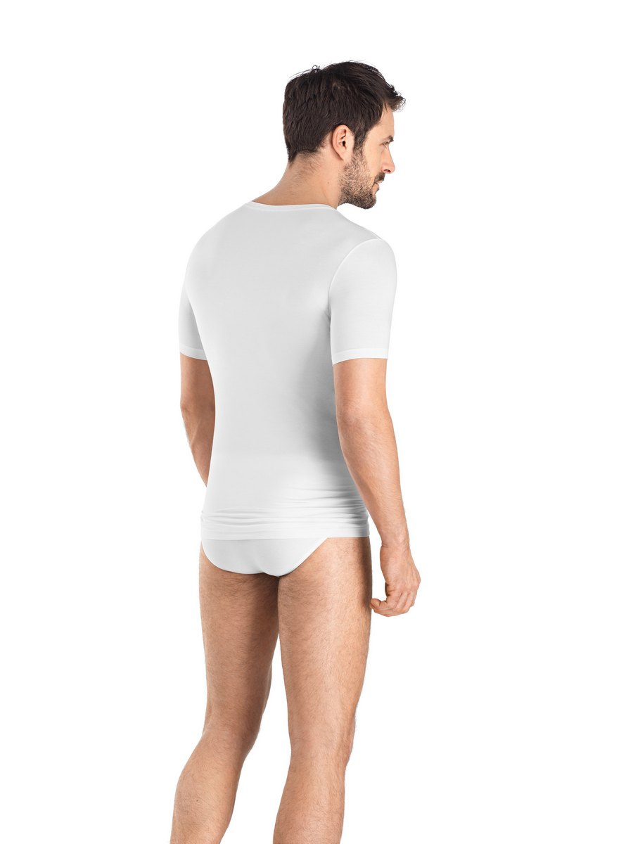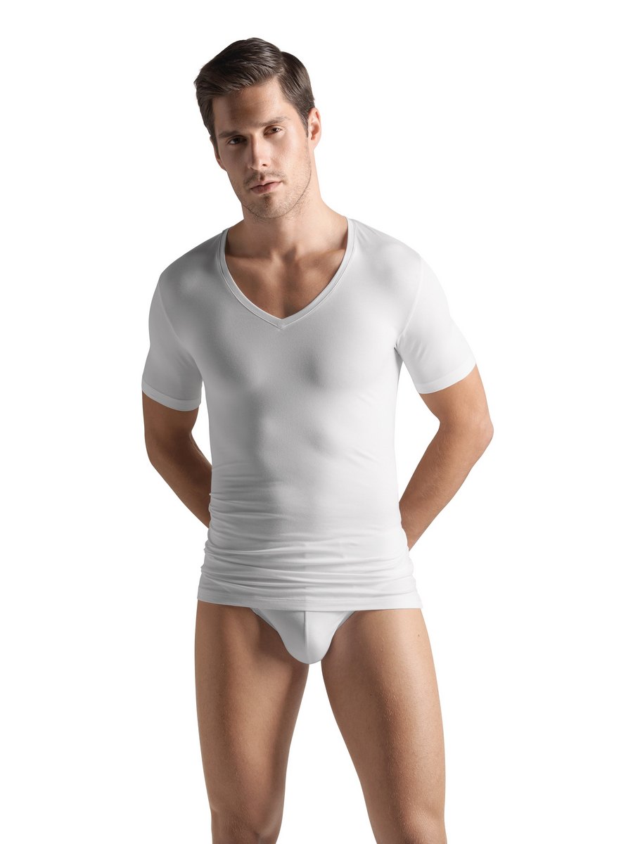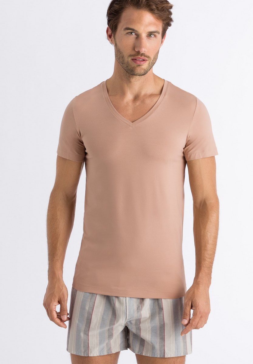 T-shirt coupe moderne avec col en V Mélange de matières de coton mercerisé et une touche d’élasthanne Polyvalent grâce à la coupe plus longue Peut être porté seul ou sous une chemise ou un sweat à capuche