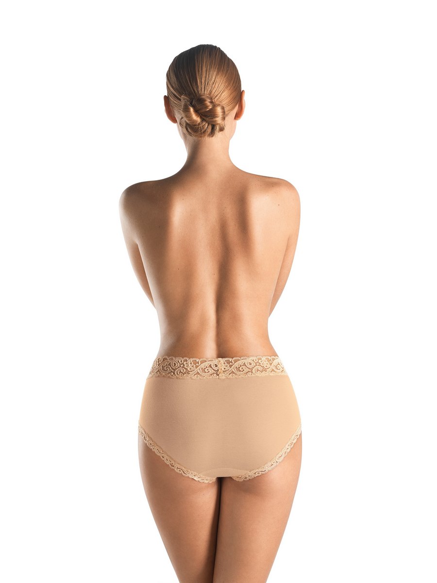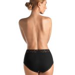 Culotte maxi échancrée en coton soyeux de qualité – Dentelle française élastique à la taille et aux extrémités des jambes – Traitement sans coutures latérales pour un meilleur confort de port