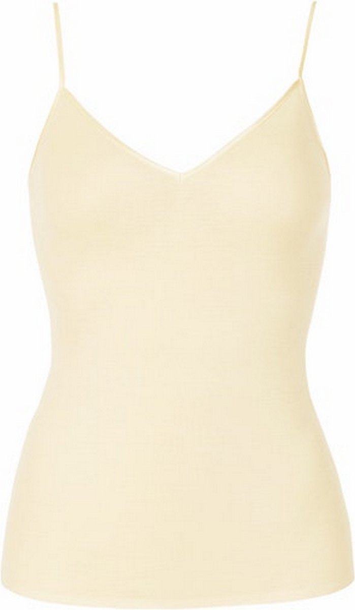 Top spaghetti luxueux avec un léger col en V Fait à 100% de soie dans une qualité de côtes douces et fines Avec bordure ultra douce en soie tissée élastique et bretelles réglables Sans coutures latérales pour un maximum de confort