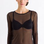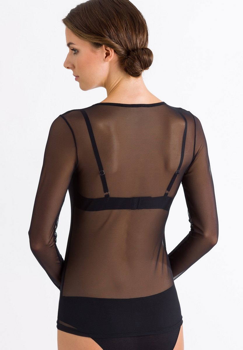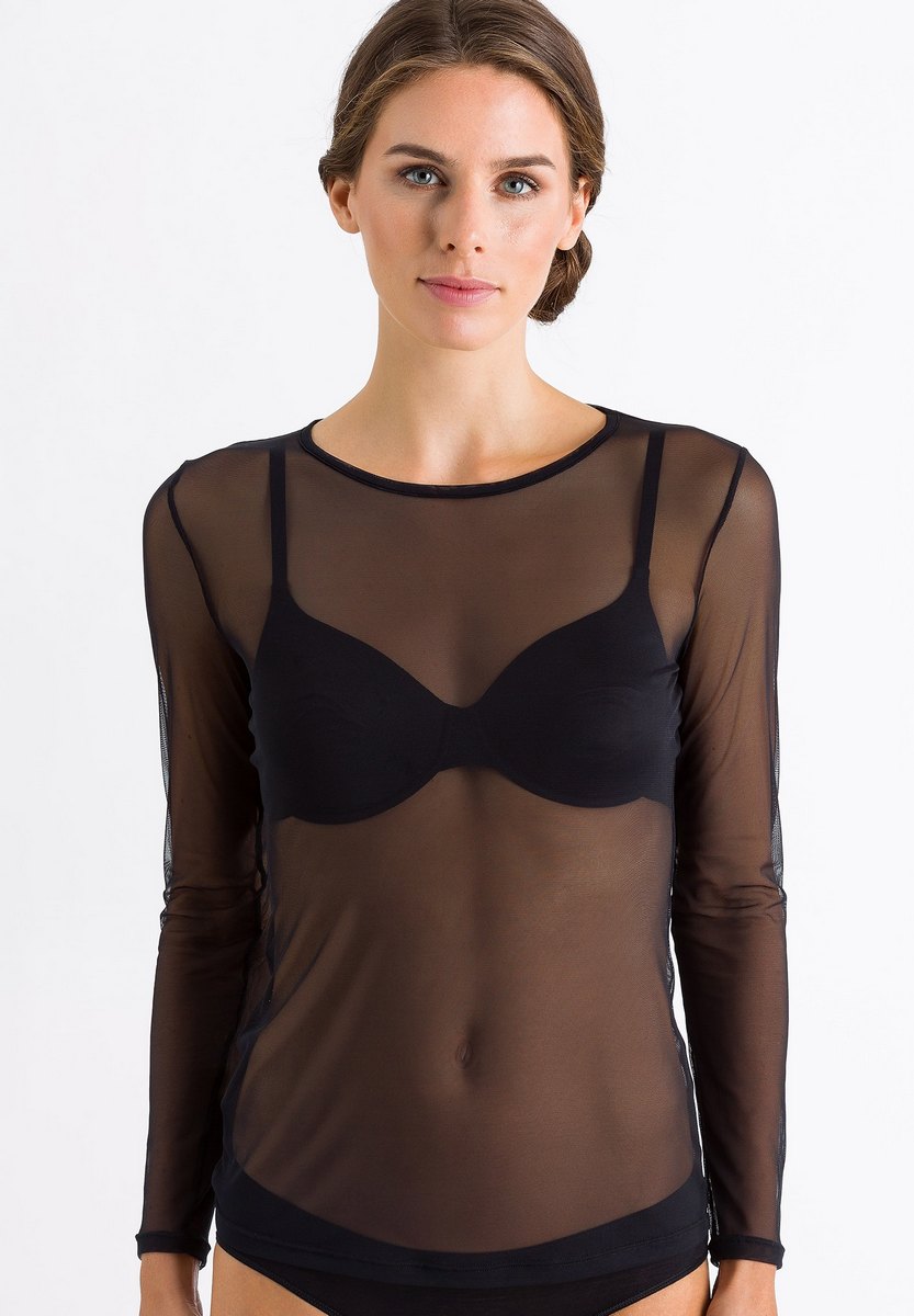Top à manches longues raffinée en tulle polyamide doux Particulièrement léger et respirant grâce au tulle transparent Col rond classique
