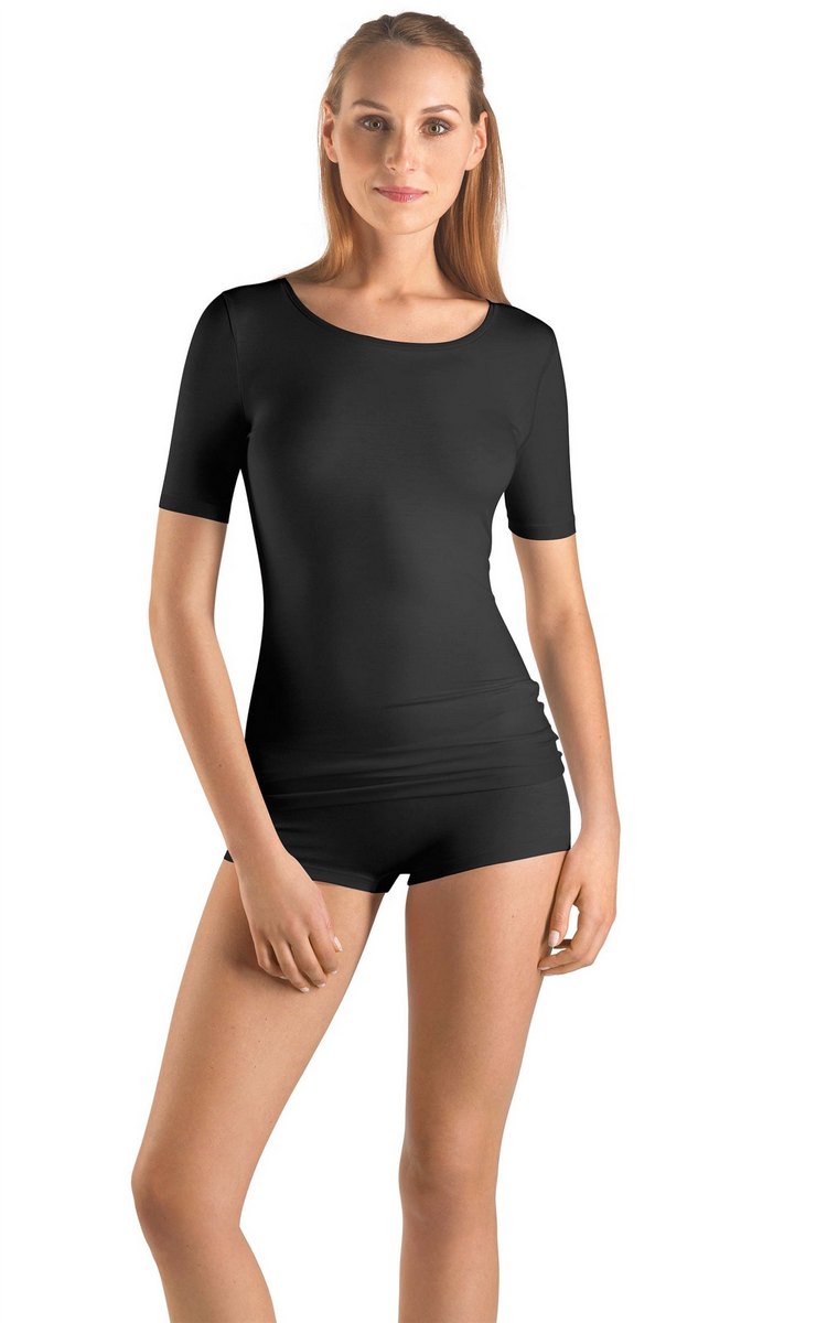 Top élégant à manches courtes avec une large encolure ronde Fabriqué à partir de micromodal super doux et d’élasthanne pour un ajustement et une liberté de mouvement Coupe ajustée près du corps