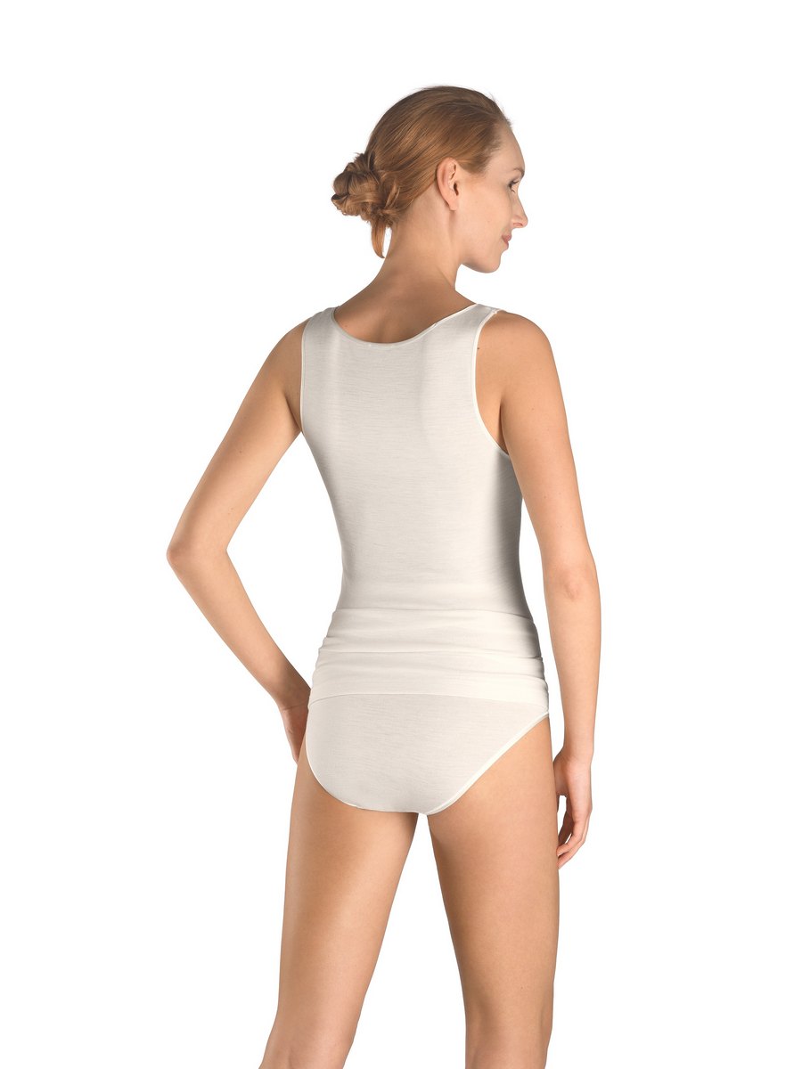‘- Top simple avec décolleté en V – Fabriqué à partir d’un confortable mélange de laine mérinos et de soie de qualité à côtes fines – Avec fine bordure en satin sur le col en V – Sans coutures latérales