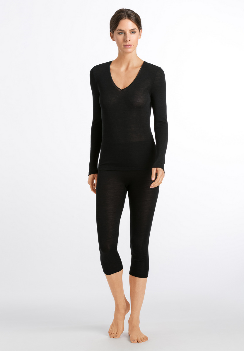 ‘- Legging 3/4 côtelé doux et fin – Vêtement de jour en soie et laine mérinos sans coutures latérales – Régulant la température – Parfait pour les activités de sports d’hiver
