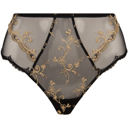 Magnifique string de la ligne Déesse en Glam de Lise Charmel aux couleurs noires et dorées