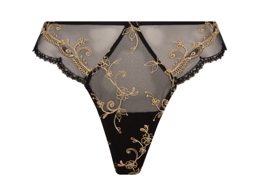 Slip séduction de la ligne « Déesse en Glam » de Lise Charmel en noir et or