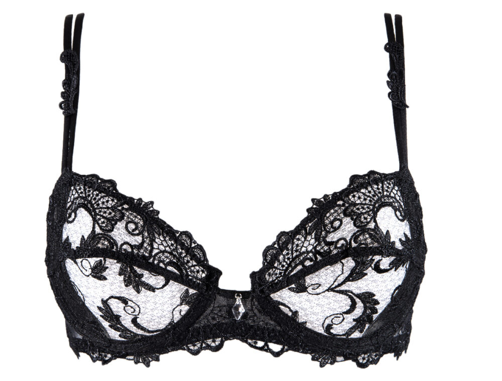 Soutien-gorge souple à armature. Ce soutien-gorge offre un porter naturel et confortable. Bonnets emboîtants. Fines bretelles spaghettis pour davantage de féminité et de légèreté. Empiècements de guipure effet tatoo sur les bonnets et au dos. Délicat pendentif Swarovski situé à l’entre-seins.
