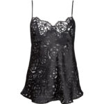 Caraco à fines bretelles réglables. Finitions dentelle au décolleté et sur la partie basse