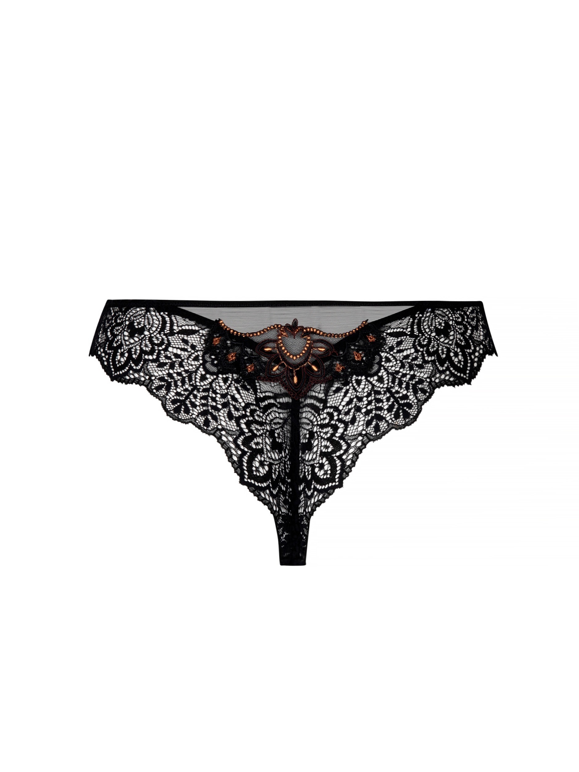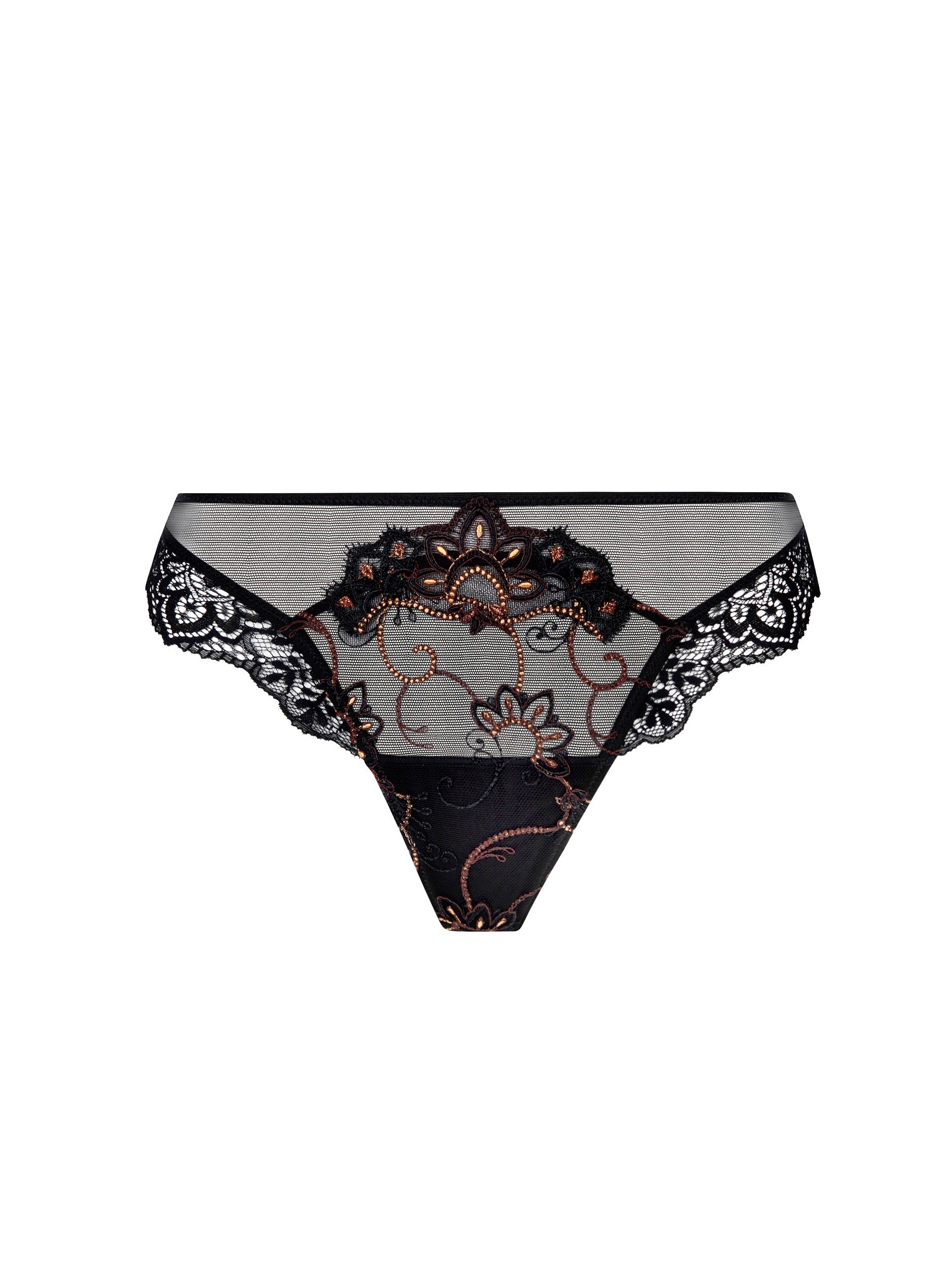 Le string Fauve Amour dans le coloris Ambre Panthère par Lise Charmel révèle délicatement les fesses tout en offrant une discrétion optimale lorsqu’il est porté.