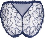 Slip en dentelle de Calais orné d’un galon brodé. Gainant sur le devant pour un effet ventre plat. Ce slip est emboîtant dans le dos et large sur les côtés pour un maximum de confort au porter. Empiècements en tulle