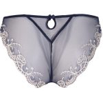 Slip séduction échancré sur le devant. Ce slip dégage la cuisse et découvre la mi-fesse avec sensualité. Devant en satin de Soie avec galon brodé. Dos en tulle brodé pour une discrétion au porter. Délicat noeud de satin situé au milieu du dos.