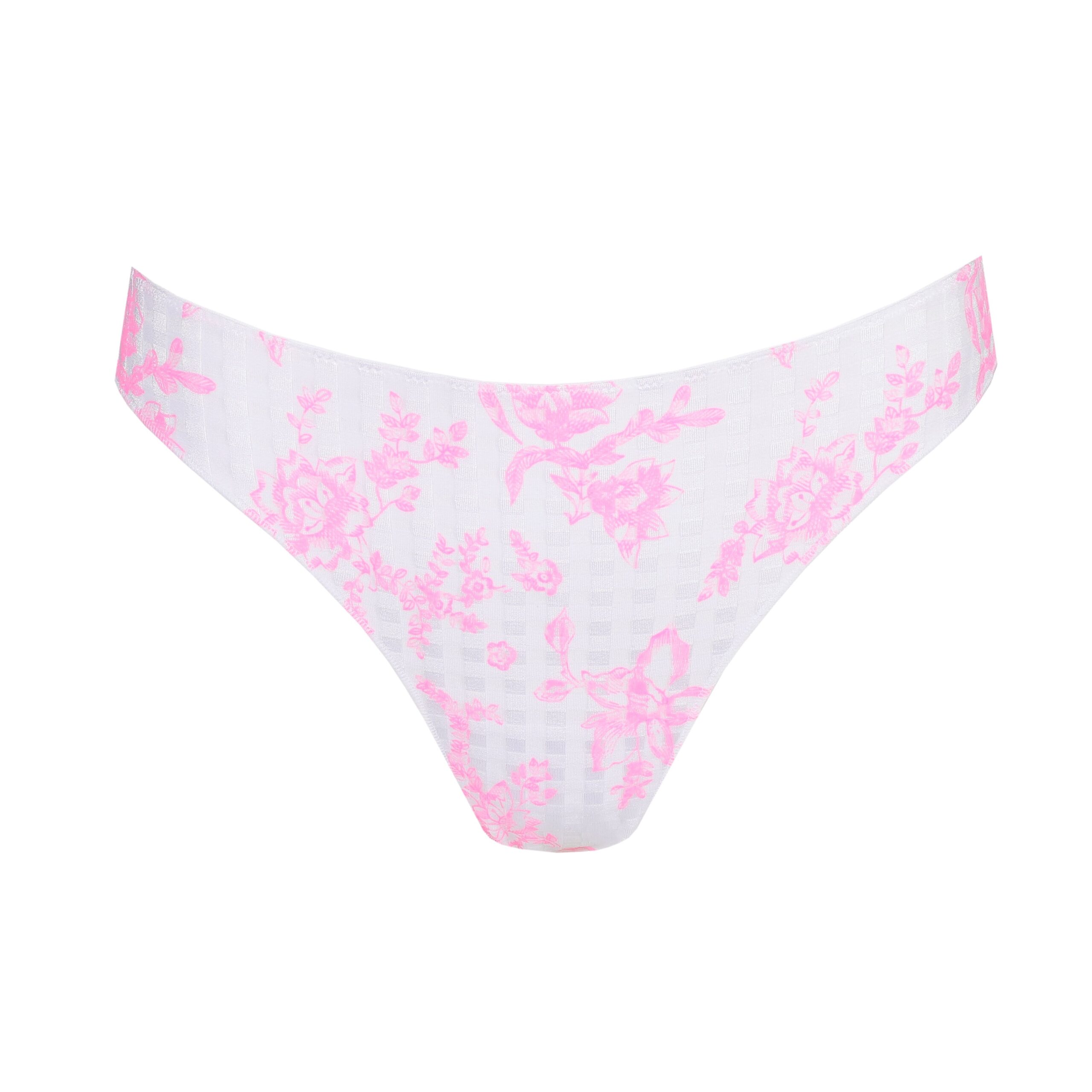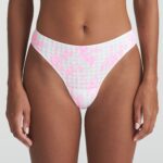 Vous reconnaîtrez ce string sexy à son mélange intemporel de tissu à carreaux fins et de broderie florale.