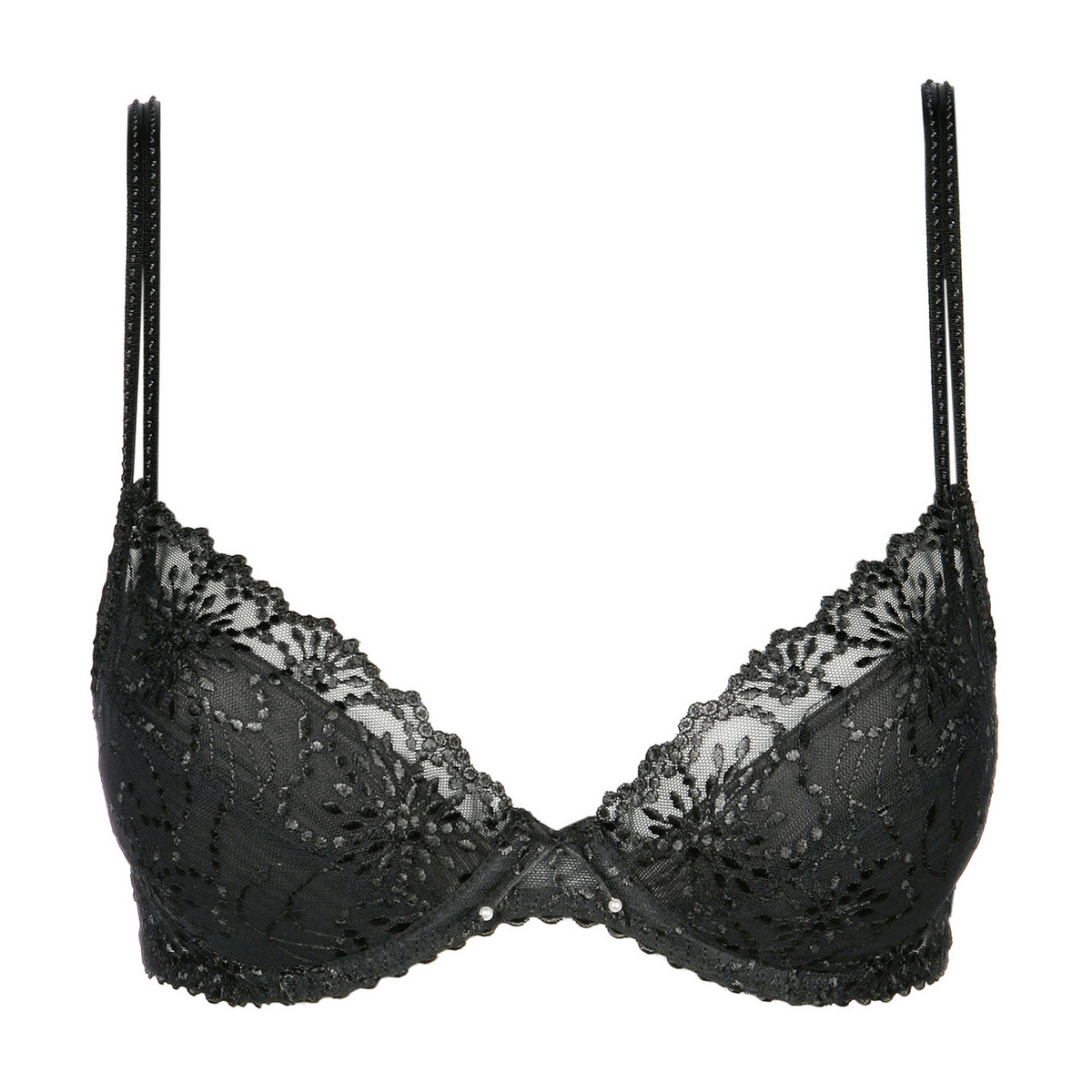 La séduction à l’état pur. Ce push-up offre un décolleté sensuel encadré de fines broderies. Les coussinets amovibles vous permettent de moduler l’effet push-up.
