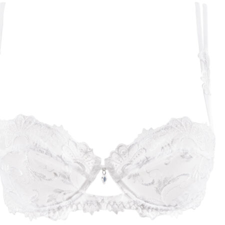 CHF 198.00Soutien-gorge corbeille souple à armature à la découpe horizontale. Ce soutien-gorge offre un décolleté arrondi tout en féminité. Fines bretelles spaghettis réglables pour davantage de féminité et de légèreté. Empiècements de guipure effet tatoo sur les bonnets et au dos. Délicat pendentif Swarovski situé à l’entre-seins.