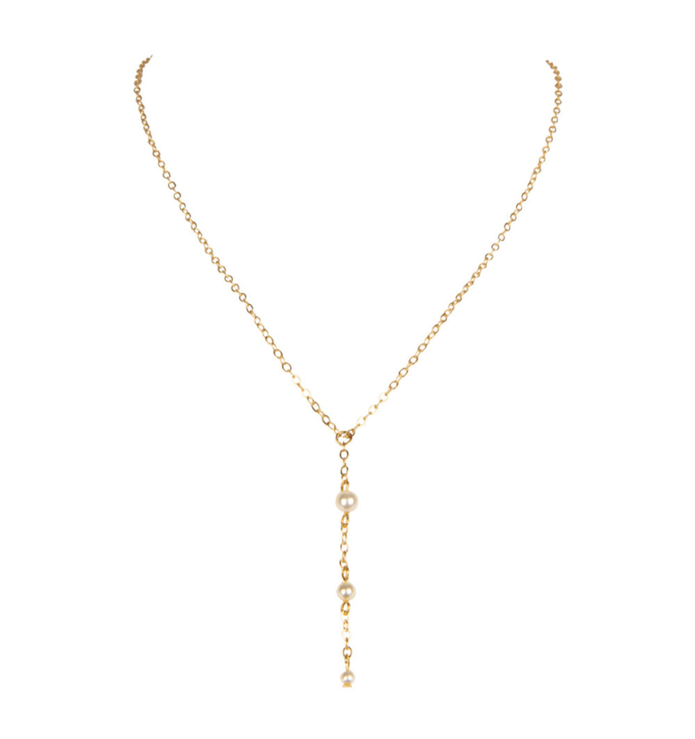 Golden necklace with 2 small pearls, to hang on the bra or simply to wear