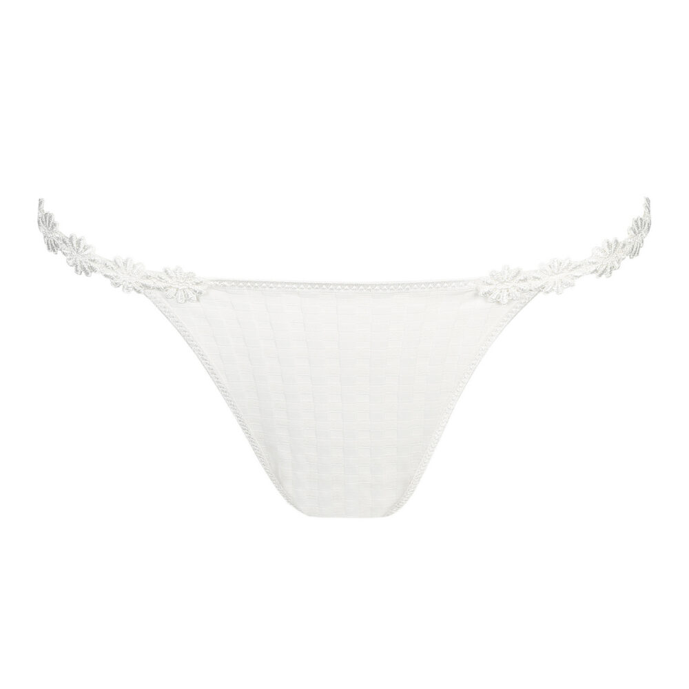 A flirty thong that is opaque in the front. The sides of the hot pants are decorated with elegant floral embroidery. A soft band has been inserted under the embroidery for the necessary comfort. White is pure, fresh and unwaveringly optimistic! In white the daisies and checks are tone on tone.