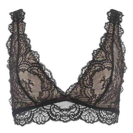 CHF 119.00Lightweight and very fashionable, the Triangle Bralette is extremely refined. The non-underwired cups support a natural cleavage, whilst the tapered strap shape is fully embroidered with intricate scalloped edging. Lace features at the back of the straps for a lightweight, seduction piece that is truly sublime. • Non-underwired triangle bra…