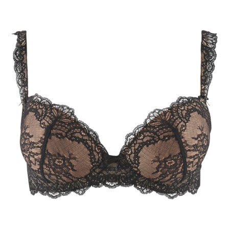 CHF 149.00The very sexy plunging neckline of the Moulded Plunge bra is extremely lightweight in its very refreshing black colour. The delicacy of the scalloped lace softens the edges of the piece for an enticing effect that is truly divine. • Plunging moulded cup style • Progressive padding for a push-up…