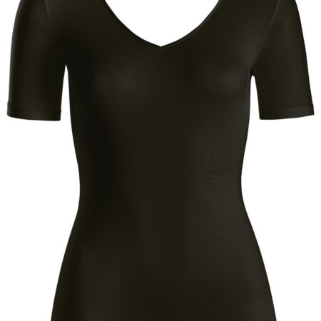 CHF 174.00T-shirt luxueux à col V à manches longues Fait à 100% de soie dans une qualité de côtes douces et fines Avec bordure super douce en soie tissée élastique à l’encolure Avec des extrémités particulièrement plates sur l’ourlet et les manches Fabriqué sans coutures latérales pour un confort maximal