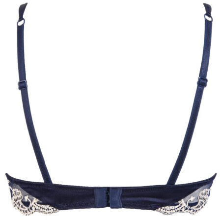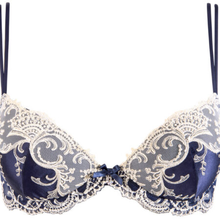 CHF 198.00Soutien-gorge coque à armature. Ce soutien-gorge offre une poitrine galbée et arrondie. Bonnets en satin de Soie incrusté d’une broderie sur tulle. Fines bretelles spaghettis réglables pour davantage de légèreté et de féminité. Dos en tulle brodé. Délicat nœud de satin et bijou avec strass Swarovski situés à l’entre-seins.