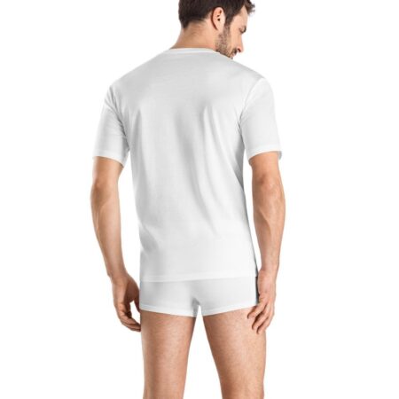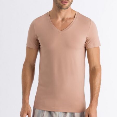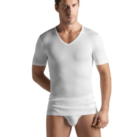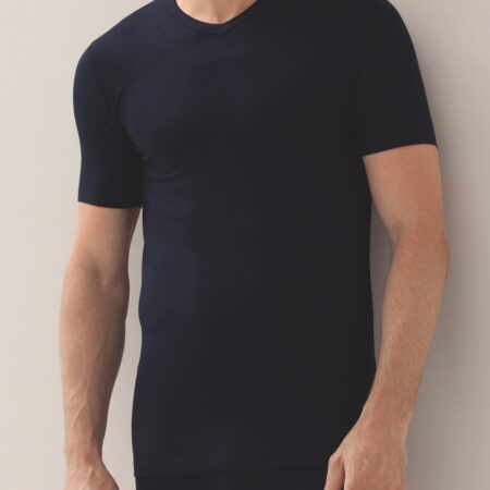 La collection Pureness allie nature et respirabilité. La cellulose de hêtre est transformée en MicroModal et épouse délicatement le corps. Ce T-shirt près du corps à haute encolure V fait aussi bonne figure comme haut.