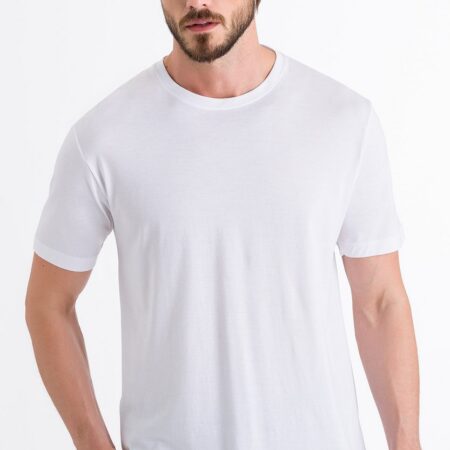 T-shirt classique à col rond moderne Polyvalent grâce à une coupe plus longue et plus généreuse Les coutures plates sur le cou et l’ourlet permettent de le porter sous des chemises
