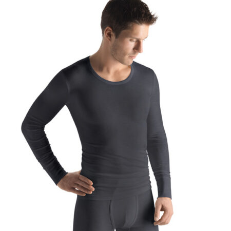 ‘- T-shirt à manches longues avec une coupe plus longue, adapté pour être porté sous des chemises – Sous-vêtement thermique – protège contre la chaleur et la chaleur – Polyvalent – comme t-shirt normal ou vêtement de sport – Assez mince pour être porté comme sous-vêtement de ski